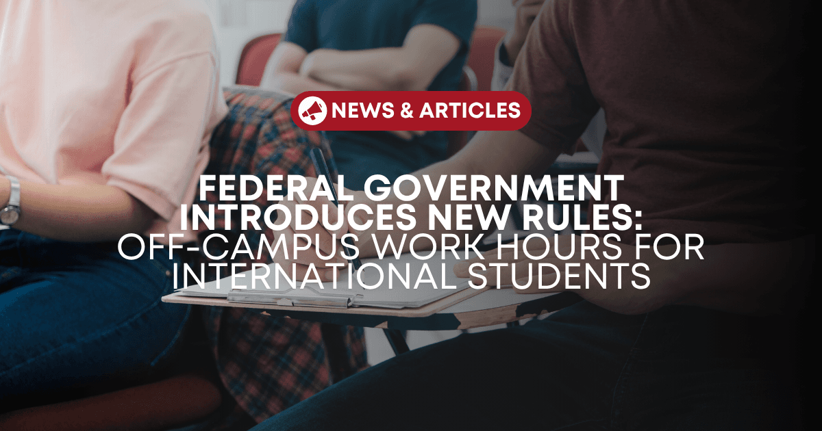 On April 29, 2024, the federal government announced that international postsecondary students will be able to work a maximum of 24 hours per week during term time, starting in September.