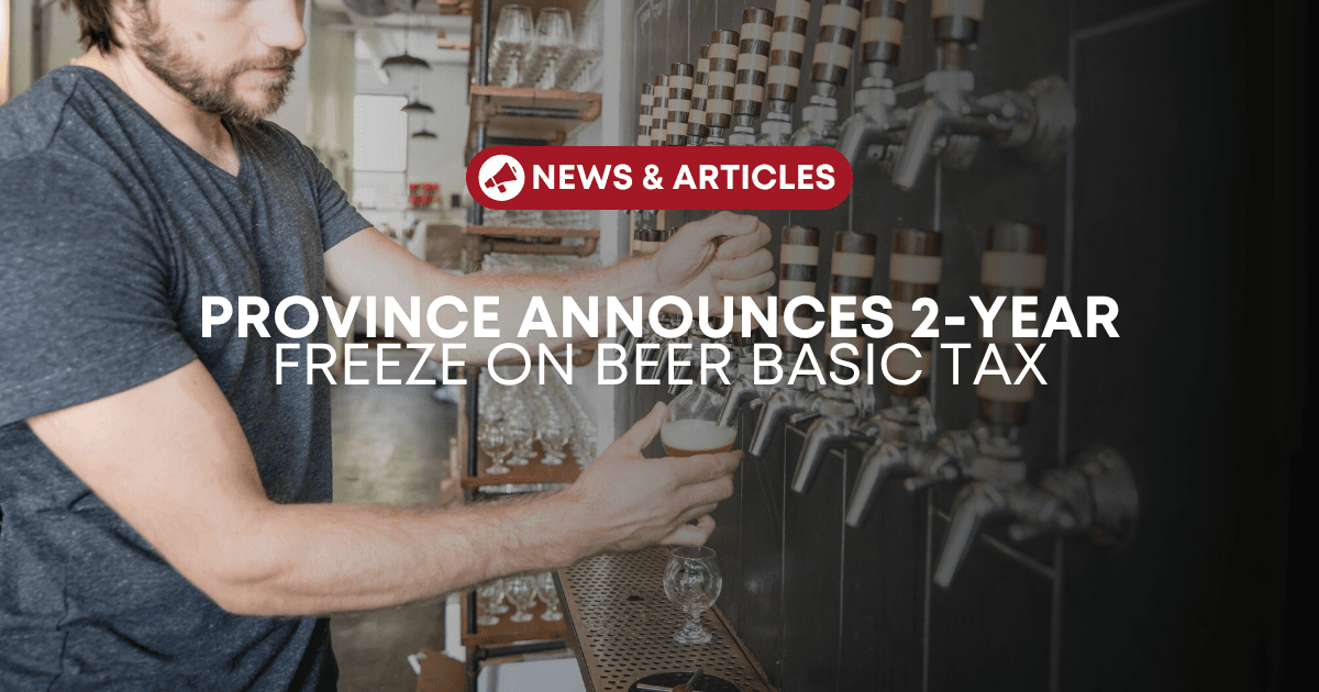 This morning, the Ontario government announced a freeze on the automatic annual increase of the beer basic tax. The estimated 4.6 per cent increase to the beer basic tax was scheduled for March 1, 2024, and would have resulted from the rate being indexed to inflation. The provincial government has deferred the automatic increase for the past six years. The latest freeze will be in place for two years, until March 1, 2026.